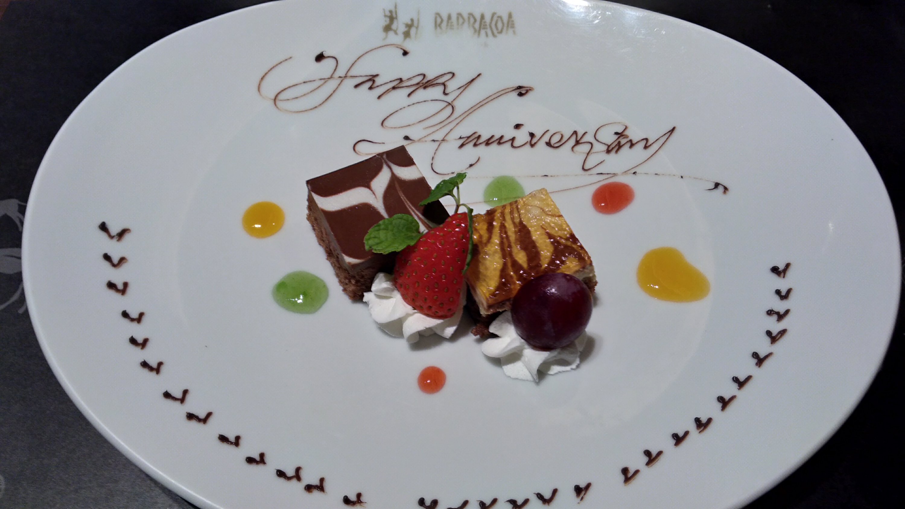 主人が予約の時に伝えてくれた様で、お祝いのプレートを頂いた。